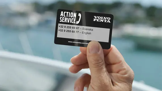 Vårt globala nätverk av återförsäljare är din första kontaktpunkt. Återförsäljarna backas upp av Volvo Penta Action Service, vår telefonbaserade support och maskinskadeservice, som erbjuder service dygnet runt, alla dagar.